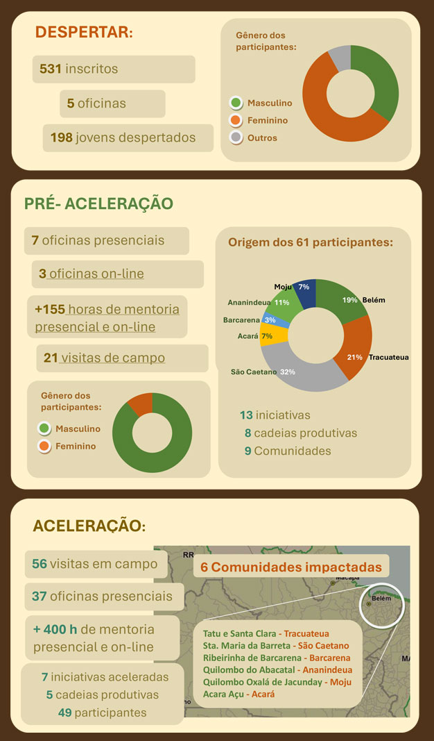 O Floresta 360° é um programa executado pelo Centro de Empreendedorismo da Amazônia, apoiado por parceiros dispostos a impulsionar negócios da sociobiodiversidade.